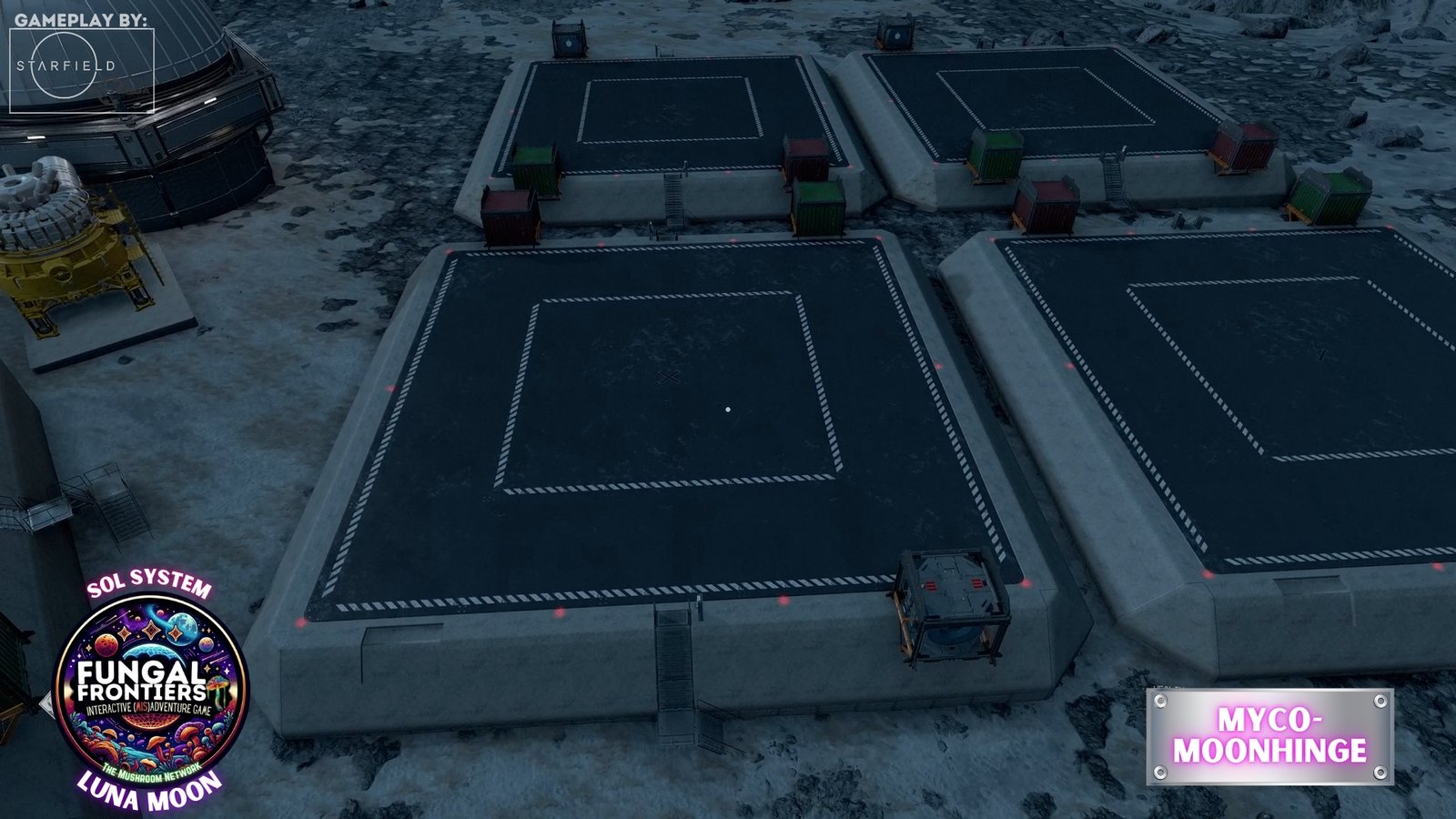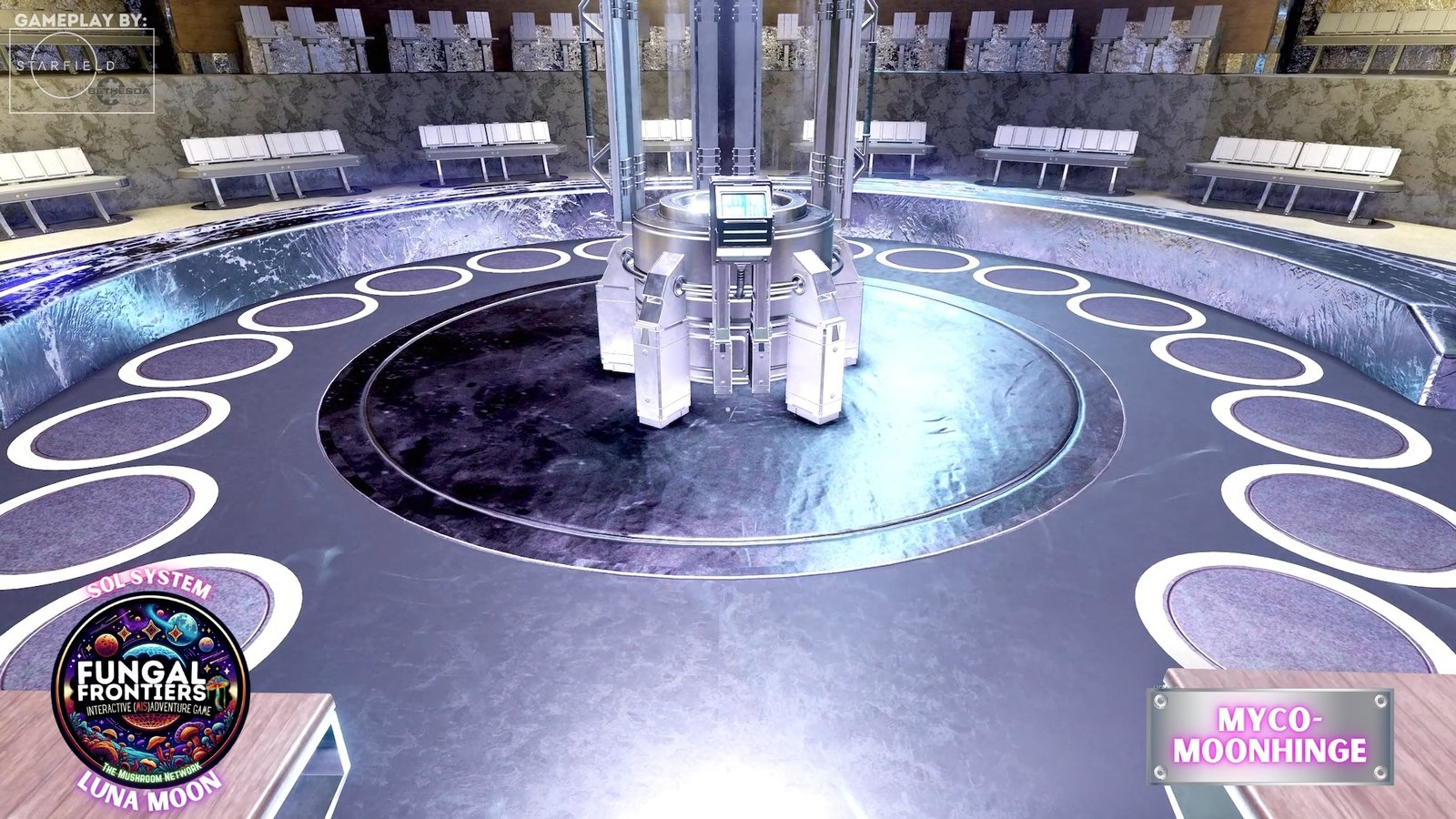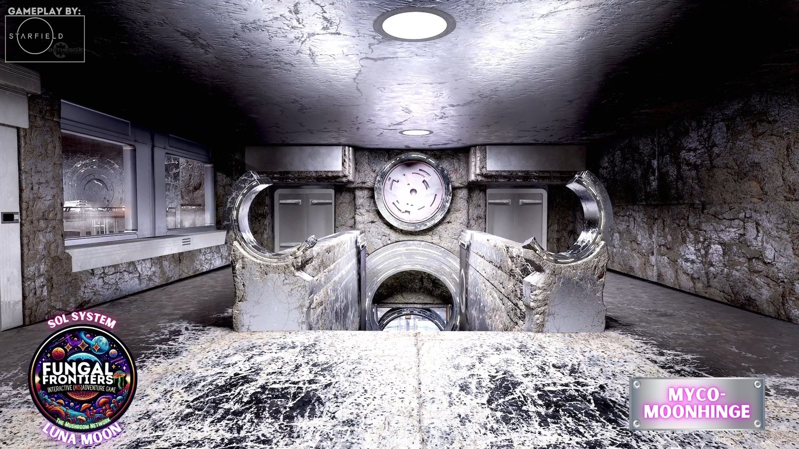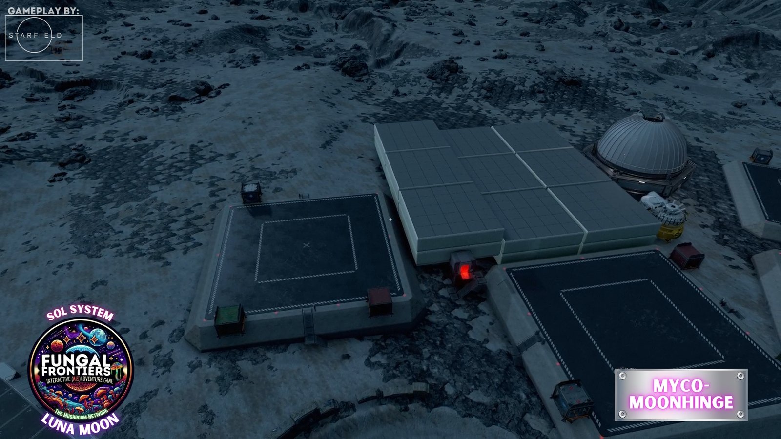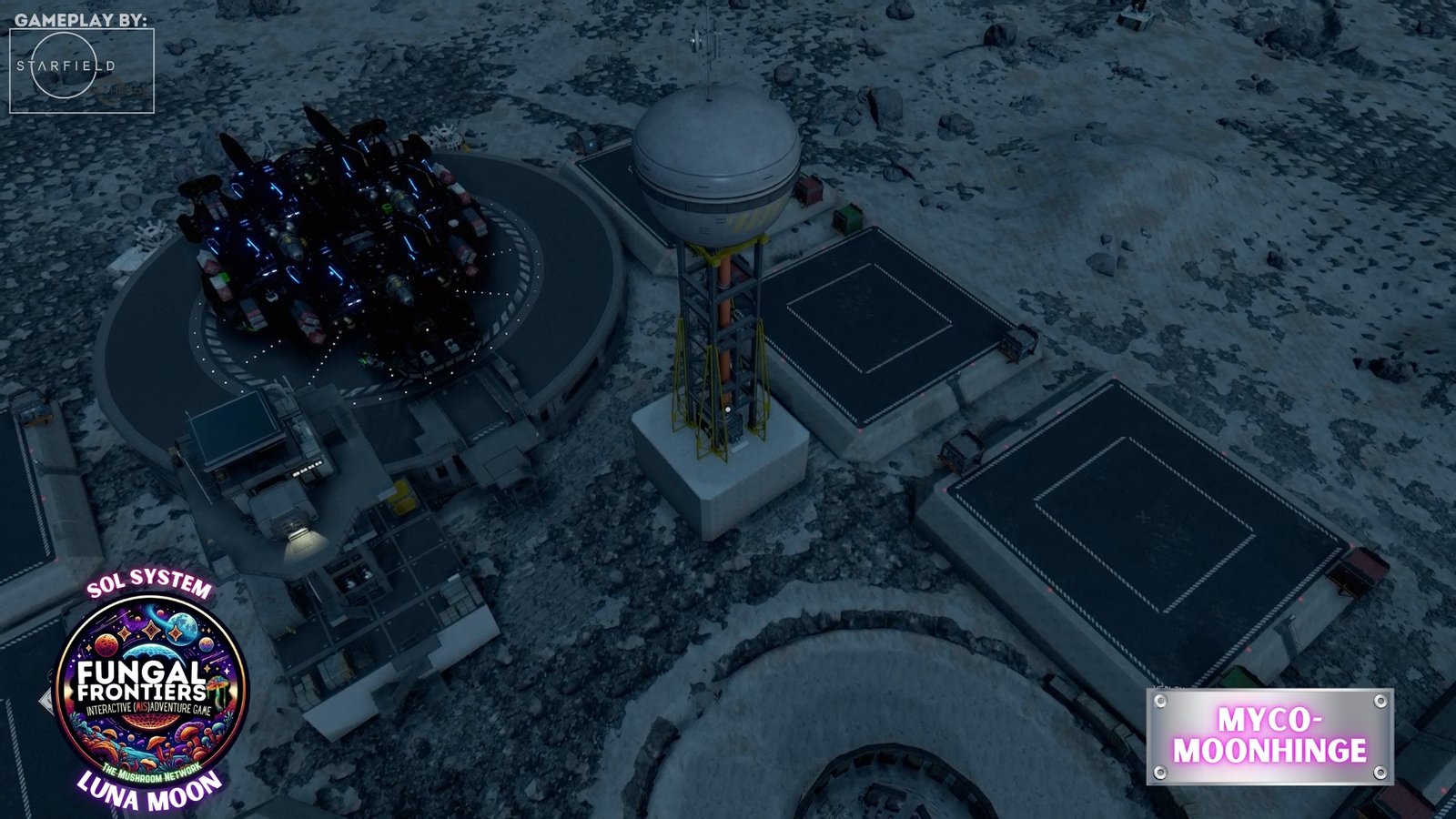 Myco-Moonhenge stands as a CRTCA-operated lunar outpost where ancient fungal mysticism converges with advanced orbital transport infrastructure. Situated on Luna within the Sol system, this installation seamlessly integrates the remnants of a sacred site once aligned to the Grand Cosmic Mycelial Network, which has now become one of the busiest docking nexuses in the Sol System, serving as the premier space cruise port and intergalactic transfer station for vessels of all sizes.