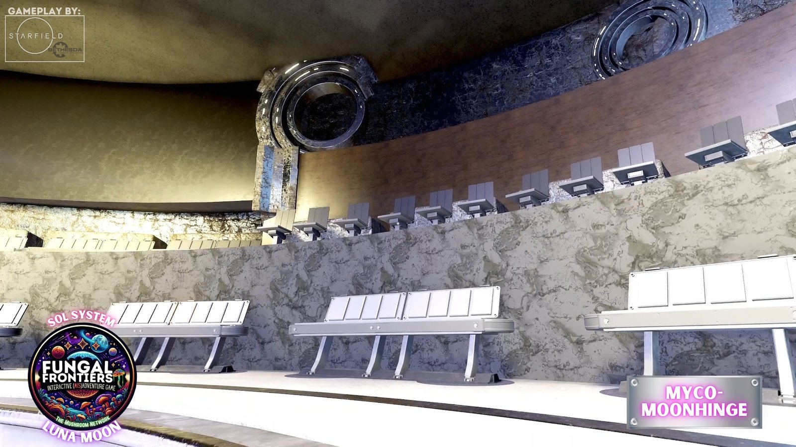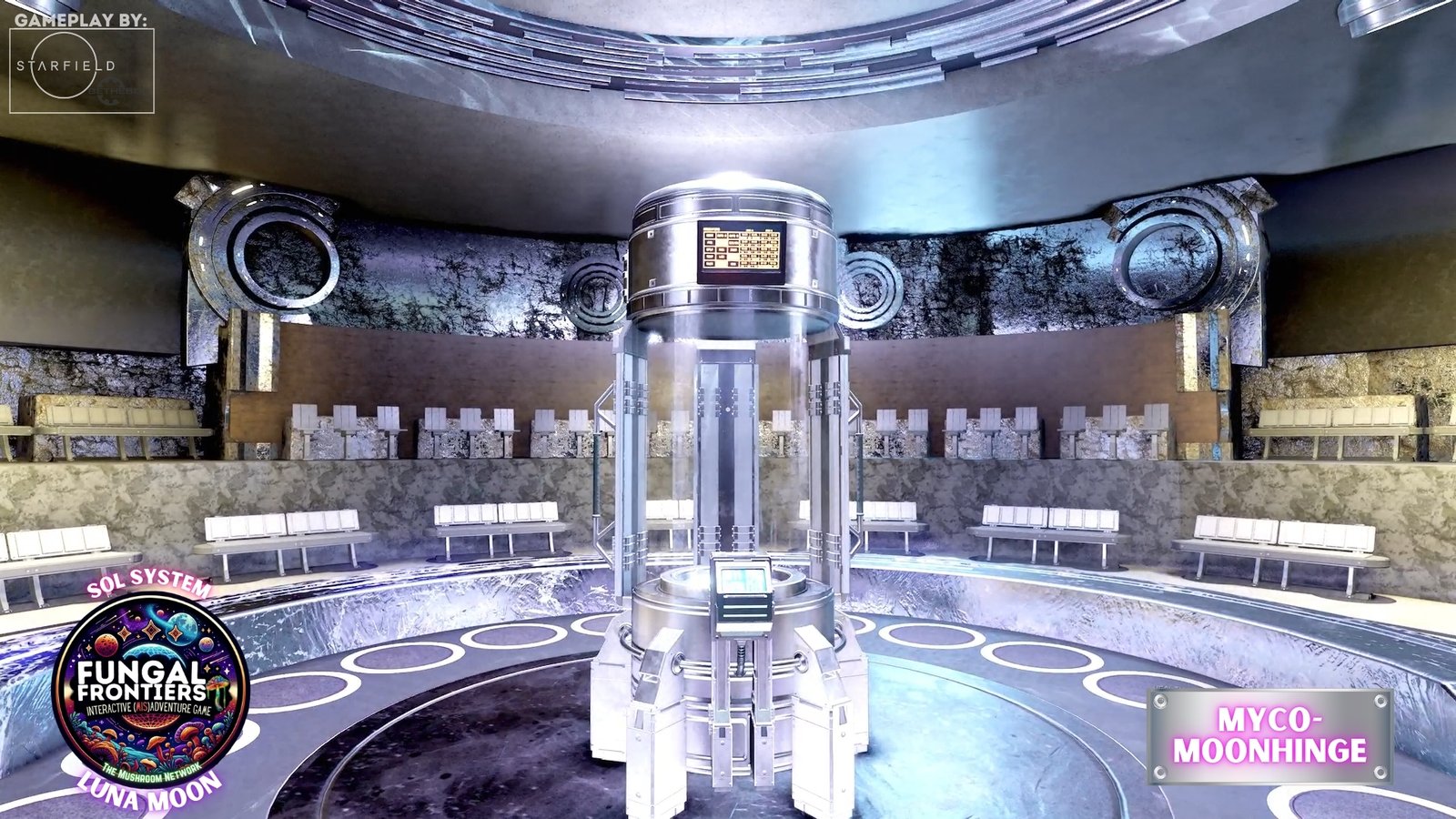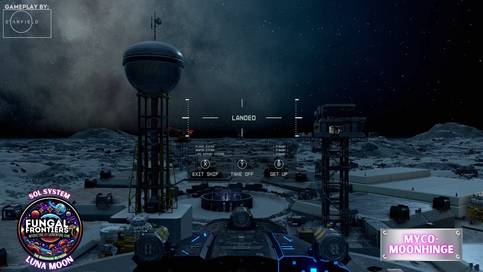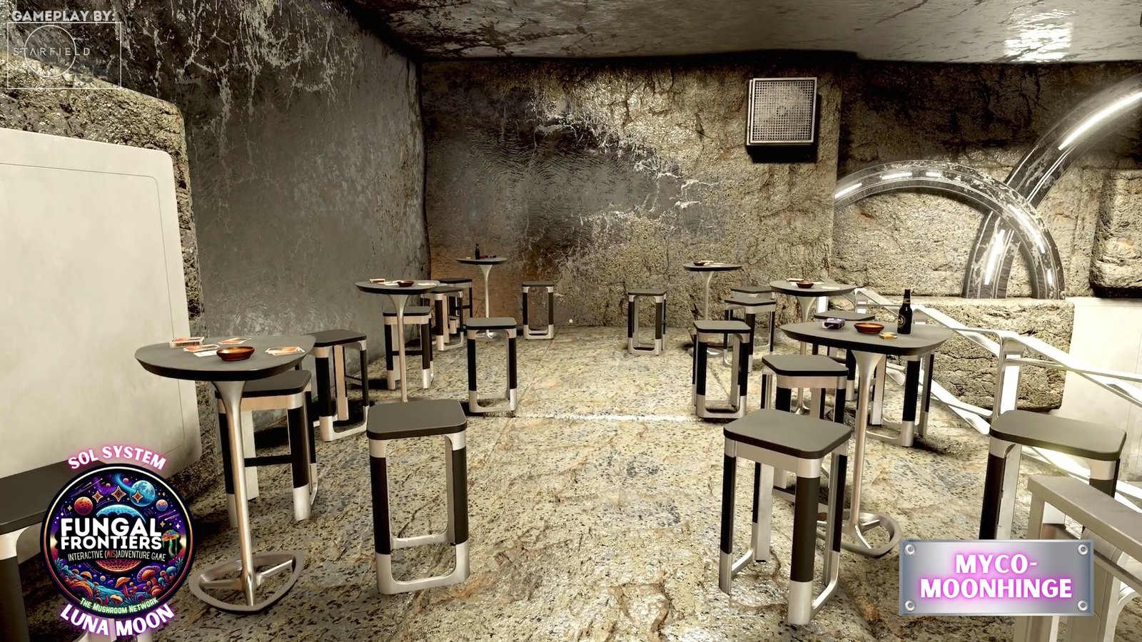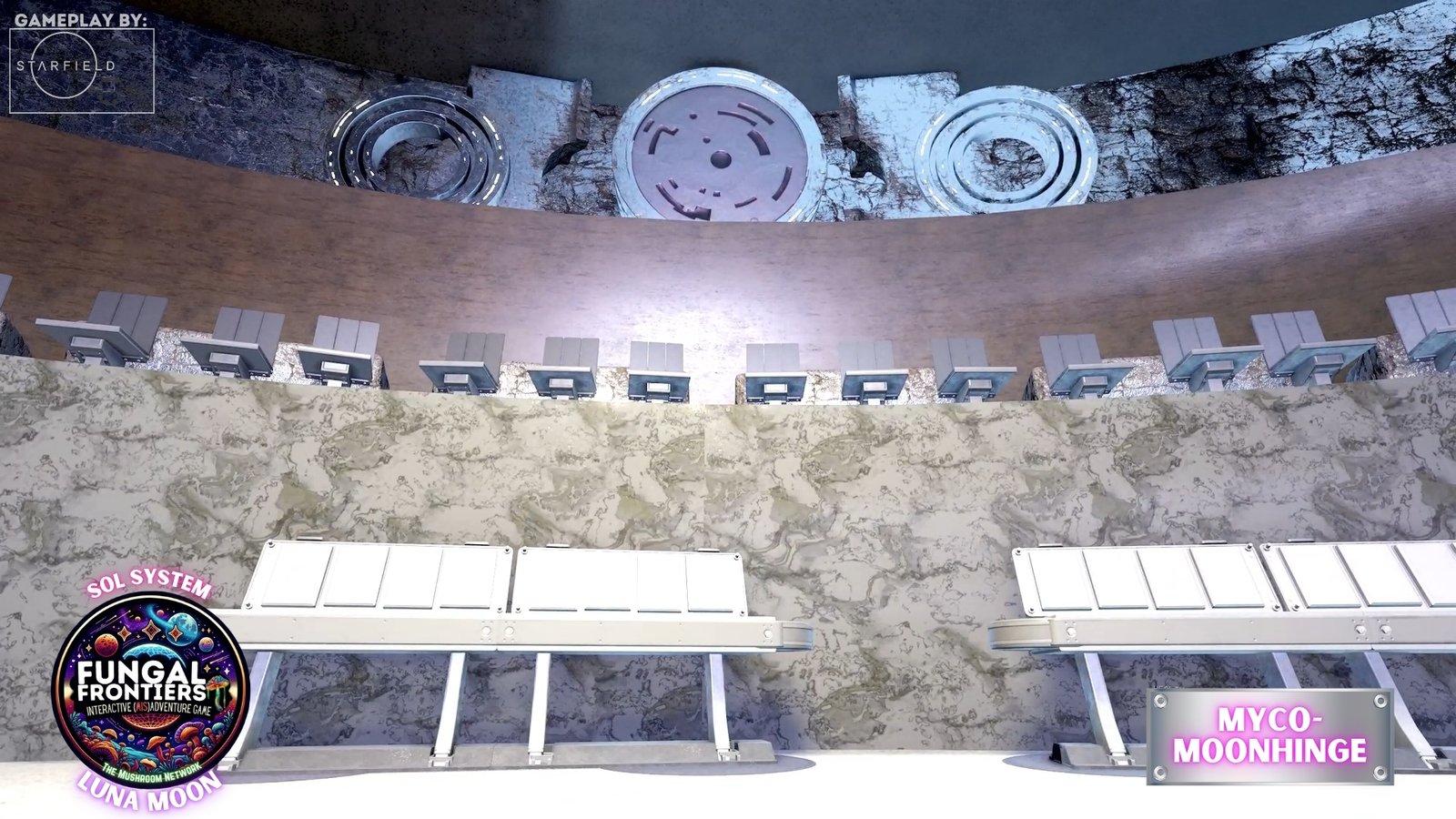 Myco-Moonhenge stands as a CRTCA-operated lunar outpost where ancient fungal mysticism converges with advanced orbital transport infrastructure. Situated on Luna within the Sol system, this installation seamlessly integrates the remnants of a sacred site once aligned to the Grand Cosmic Mycelial Network, which has now become one of the busiest docking nexuses in the Sol System, serving as the premier space cruise port and intergalactic transfer station for vessels of all sizes.