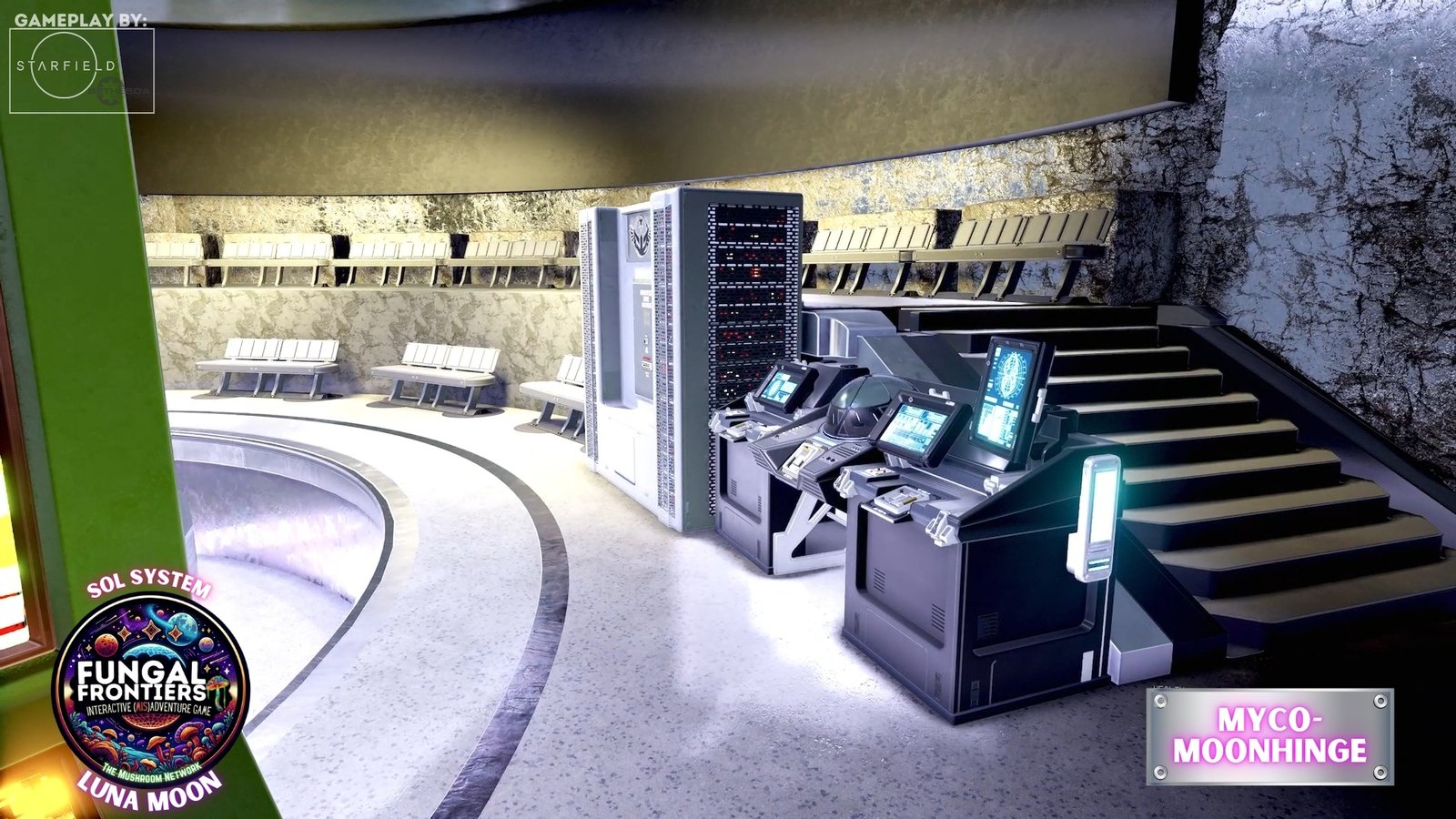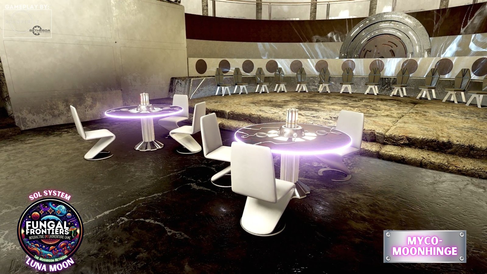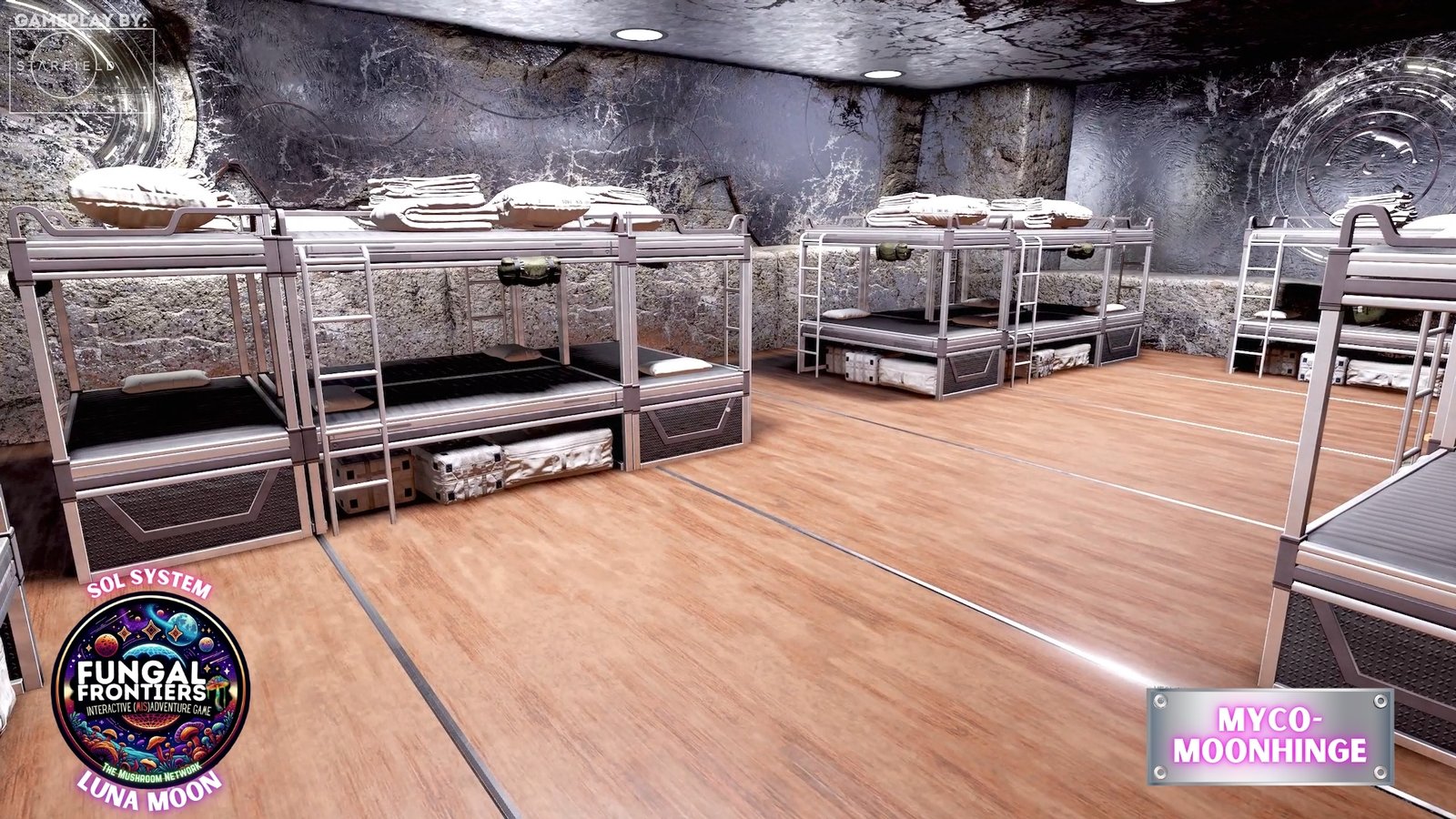 For travelers, Myco-Moonhenge is a dreamlike threshold of arrival and departure. The Grand Stronghold HAB Complex provides the surreal luxury expected of the most prestigious hub in the network: walls that glow like living mycelium, phosphorescent chandeliers of spore-glass casting otherworldly light on banquets, and negotiation halls that feel as though they breathe. The SHABS Tower looms as a constant reminder that safety and structure are paramount, a fortress ensuring that the chaos of inter-Myco-Verse travel remains contained.